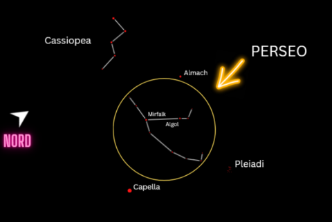 Perseo si trova nell’Emisfero nord ed è la 24esima costellazione per dimensione, la cui scoperta risale fino ai babilonesi, ben 4000 anni fa. Gli antichi greci la vedevano come una raffigurazione del mito di Perseo e della Medusa. L’istante individuato è quello in cui Perseo ha appena decapitato la Medusa e ne tiene la testa…