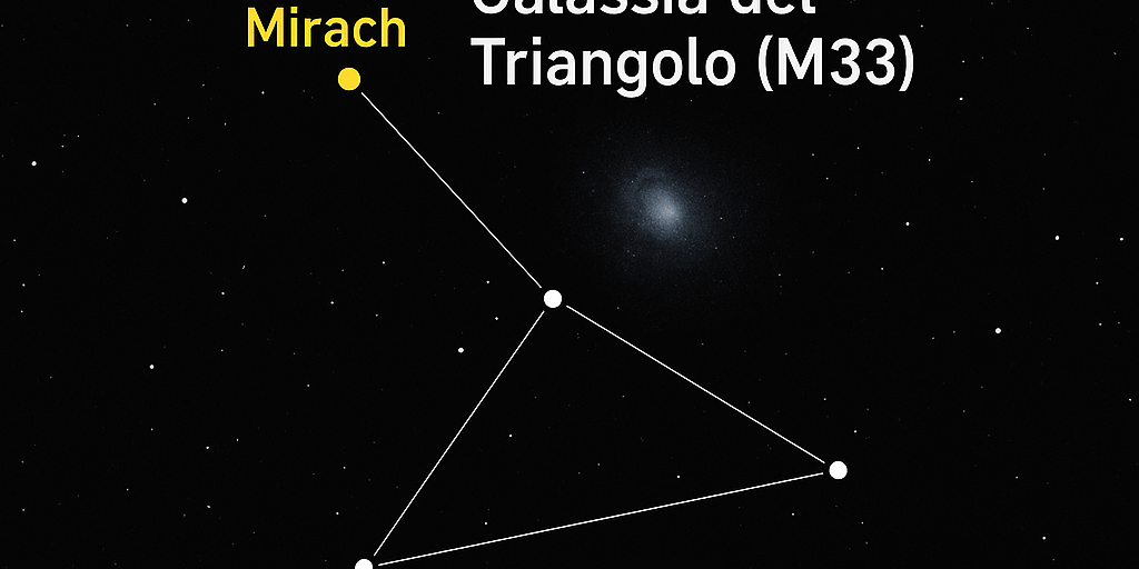 💡 Suggerimento pratico: per localizzare M33, traccia una linea da Mirach (nella costellazione di Andromeda) verso α Trianguli: la galassia si trova poco più in alto, lungo questa direttrice.